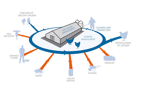 La biosécurité est un élément fondamentale pour les élevages, assurer un haut niveau de biosécurité est essentiel pour garantir une bonne qualité de poulette et une bonne future pondeuse. La biosécurité comprend plusieurs aspects, que ce soit la gestion des flux (de personnes, de véhicules, etc), la gestion des rongeurs mais aussi les programmes de prophylaxie et de vaccination.